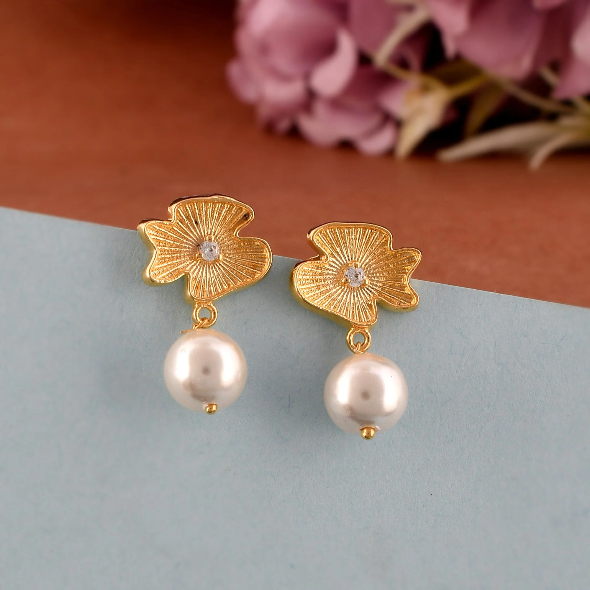 Elegant Pearl (Moti) Gold-Plated Dangle Drop Earrings