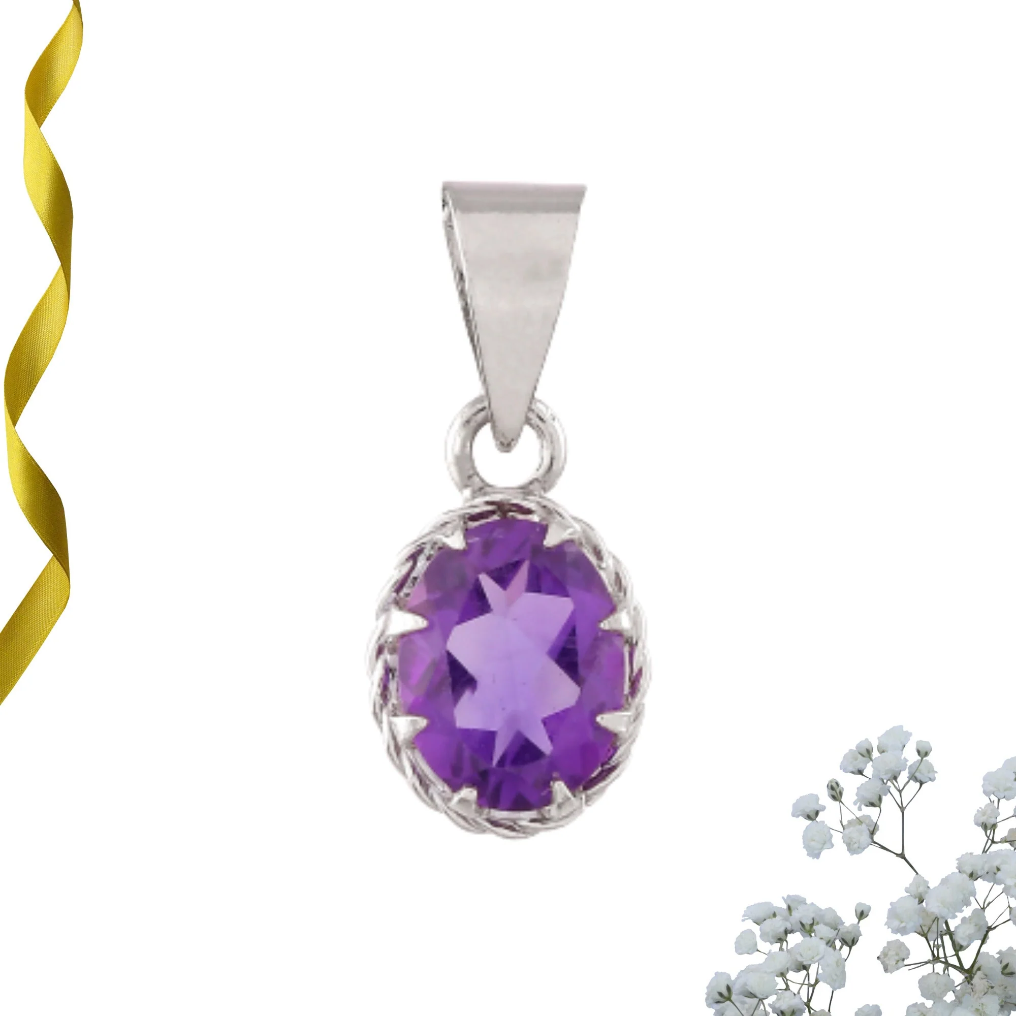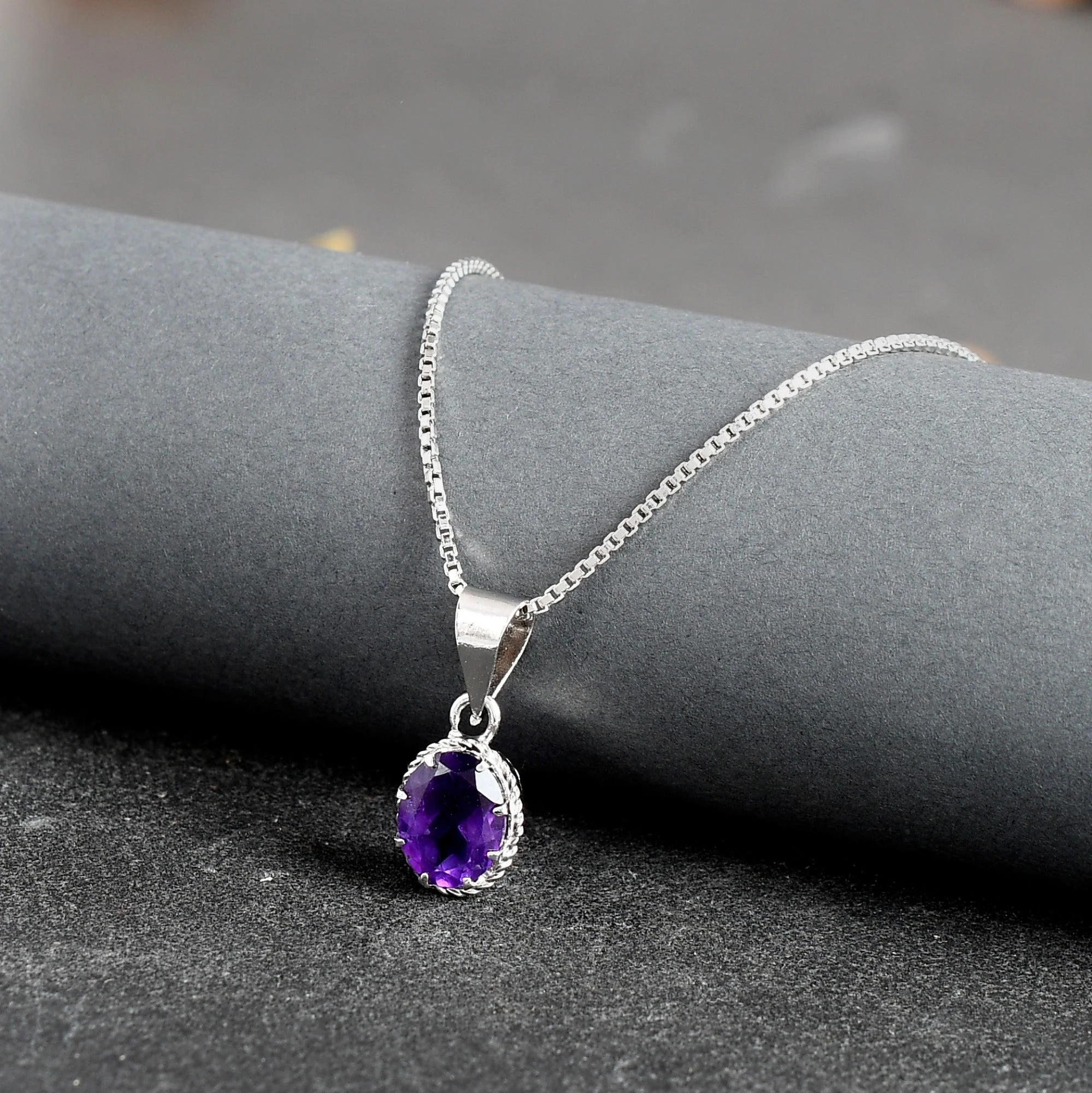 Radiant Natural Amethyst Gemstone Pendant & Chain