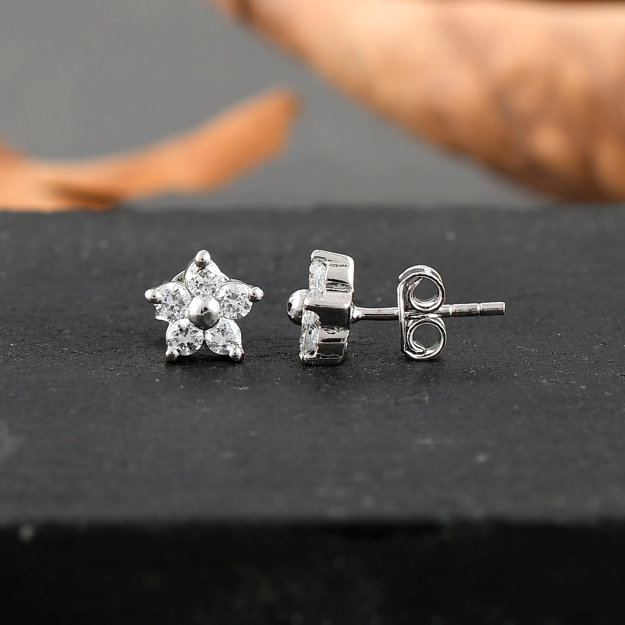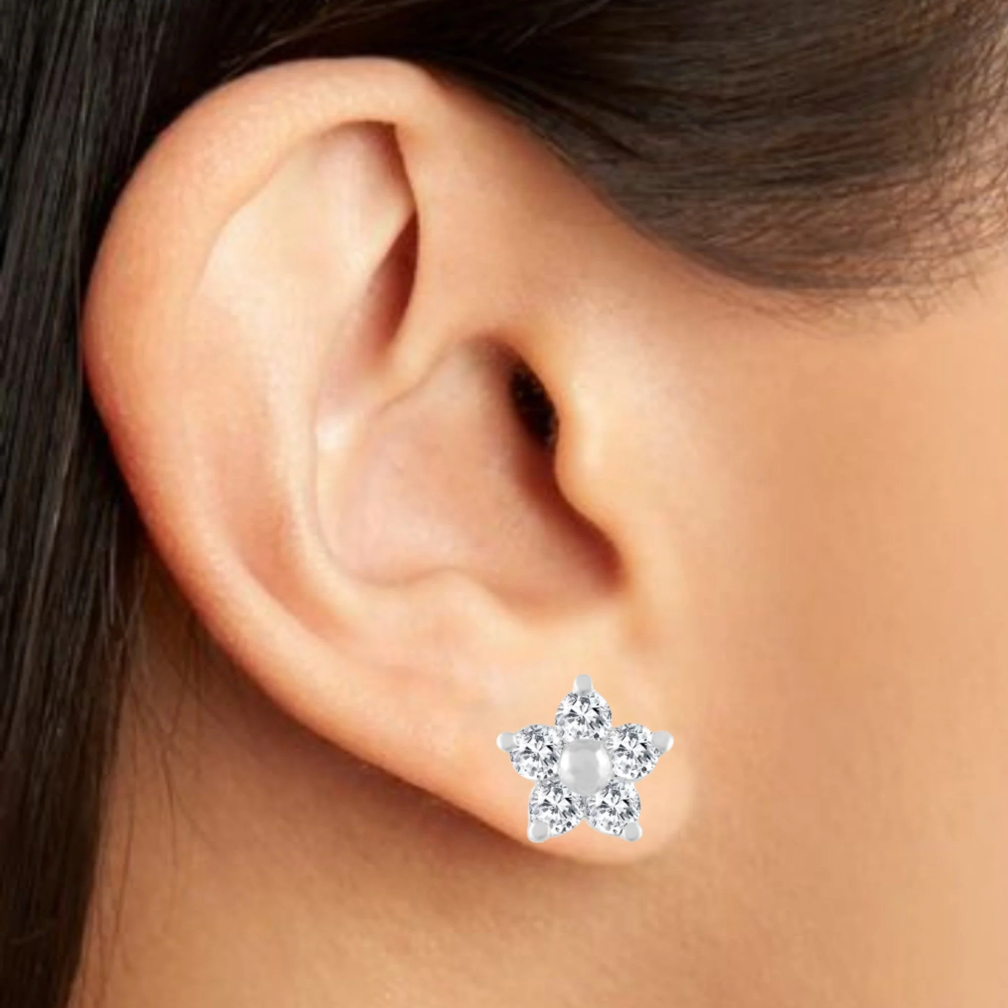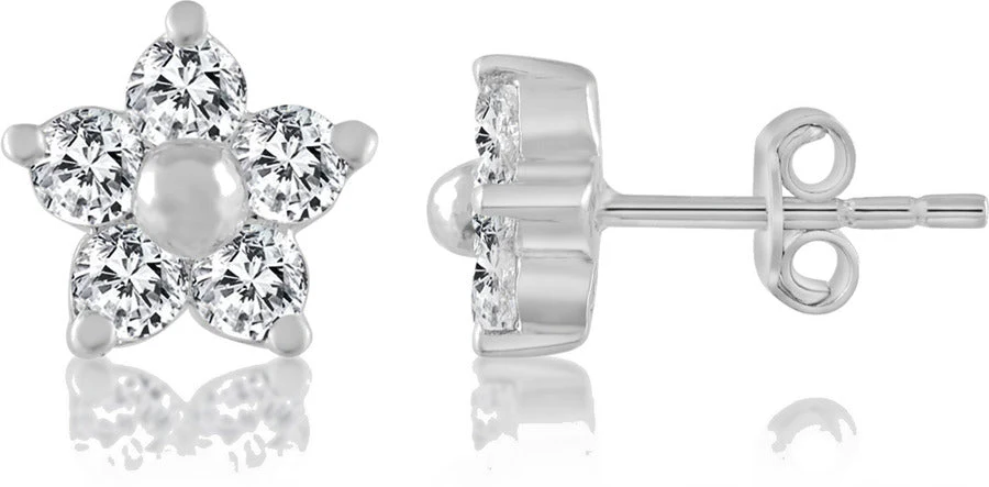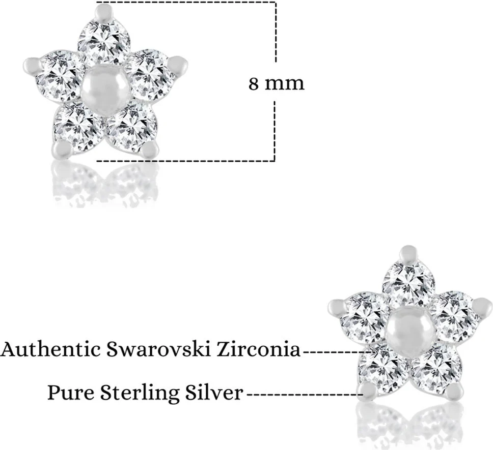 Expertly crafted with 92.5% pure silver and natural zirconia crystals, these floral stud earrings provide a rich, elegant look for women and girls. Handcrafted by skilled Indian craftsmen, they are light in weight and easy to wear. A perfect gift for any occasion to make every princess feel special.