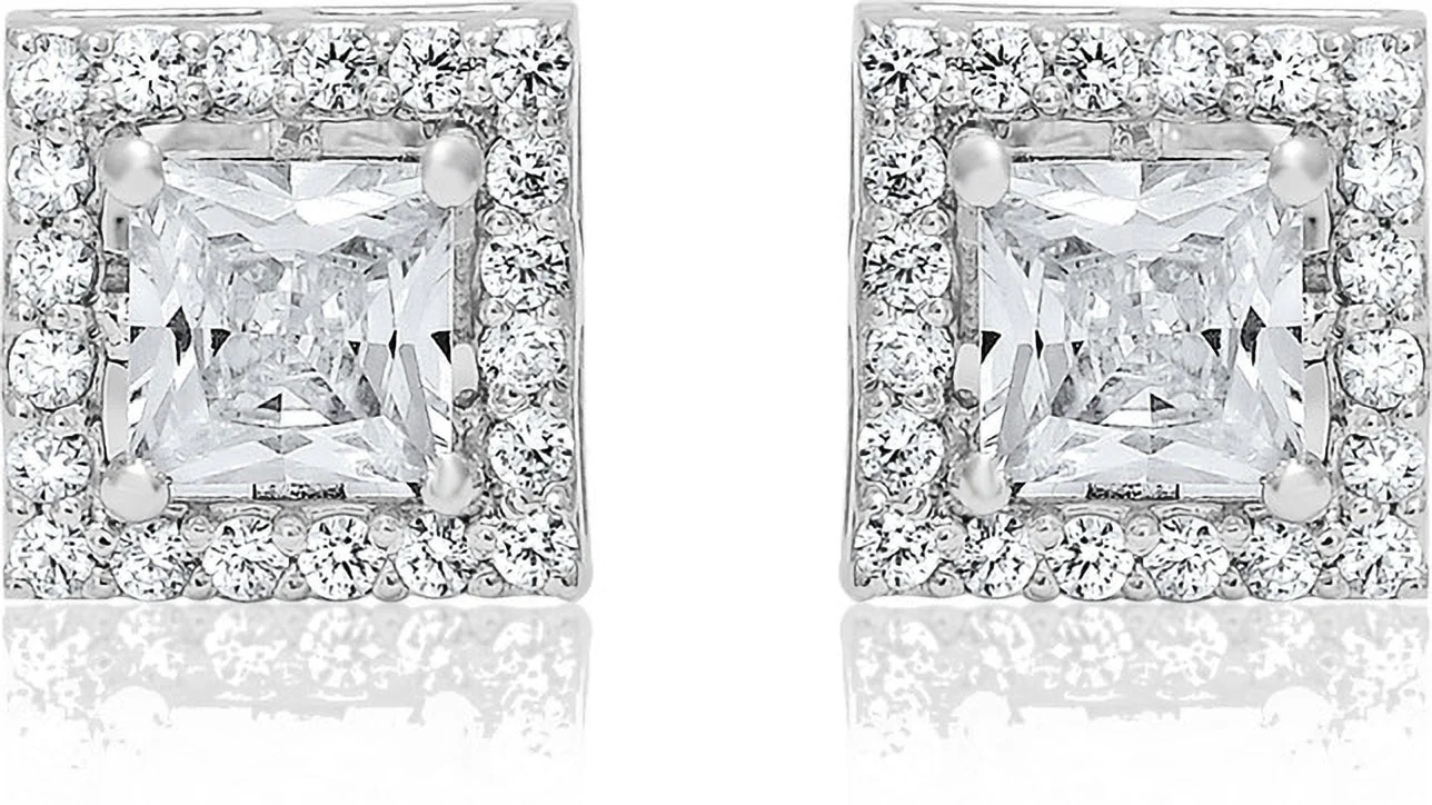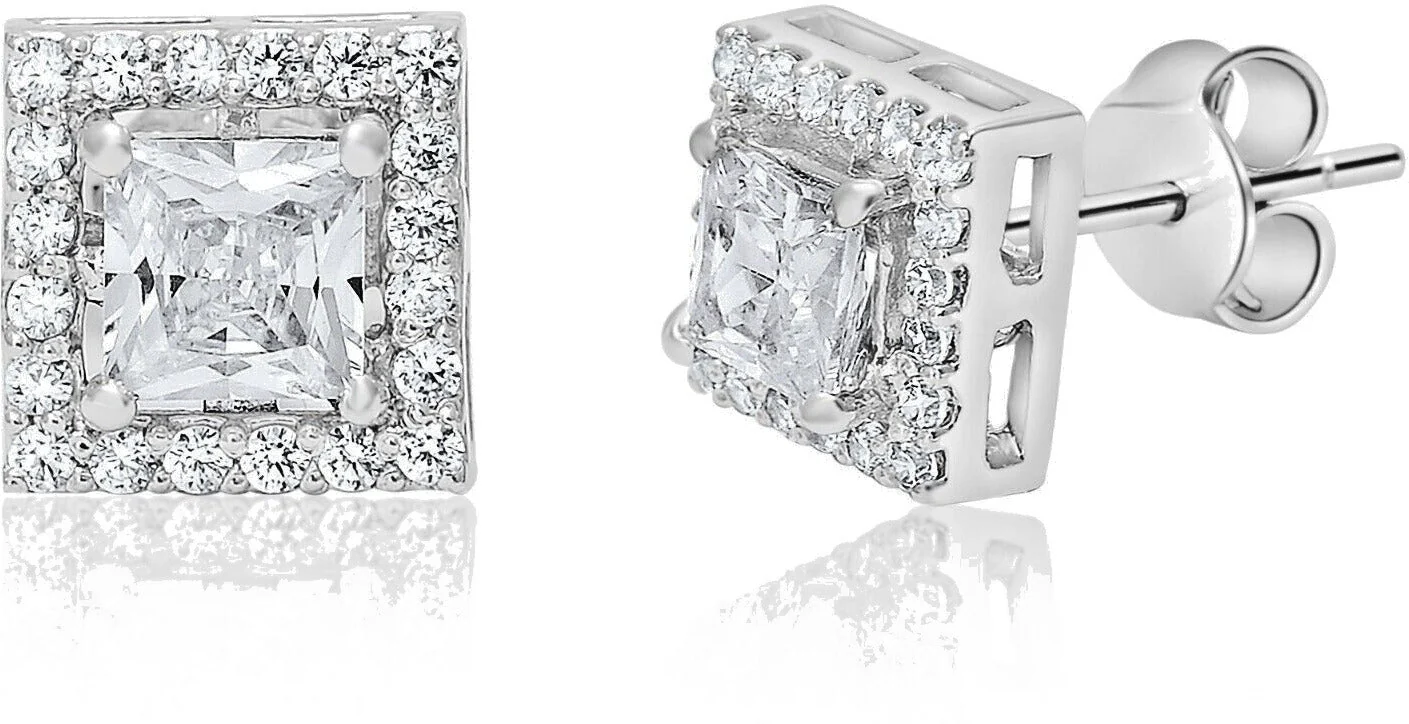 Sophisticated Princess Cut Zirconia Crystal Square Stud Earrings